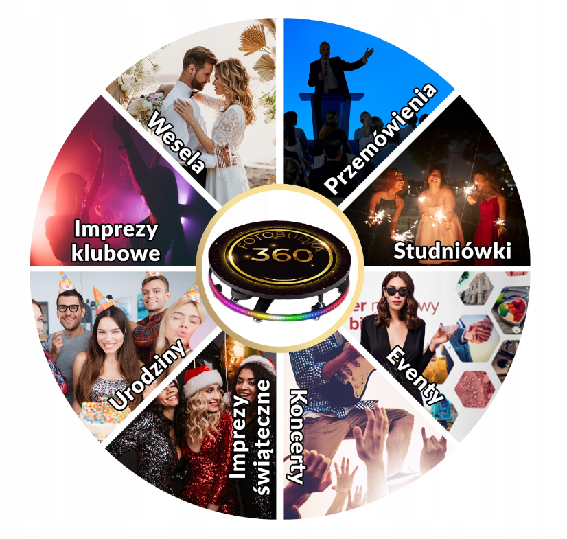 Nasza fotobudka 360 to urządzenie, które wprowadza do świata fotobudek całkowicie nowy wymiar. Dzięki jej możliwościom rotacji i zapisywaniu chwil z każdej strony, tworzymy niezwykłe, trójwymiarowe zdjęcia i animacje, które zapadną w pamięć na długo. Wybierając naszą fotobudkę 360, wybierasz nie tylko nowatorski sposób na uchwycenie chwil, ale także gwarancję satysfakcji gości i stworzenia wyjątkowej atmosfery na każdym rodzaju imprezy